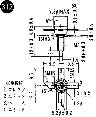 | 2SC1568 | " | " | " | 18 | 5 | 1A | 4W(Tc=25゚C) | 150 | 200 | 2 | 500 | 150* | 12 | 222 | 2SA900とコンプリ |