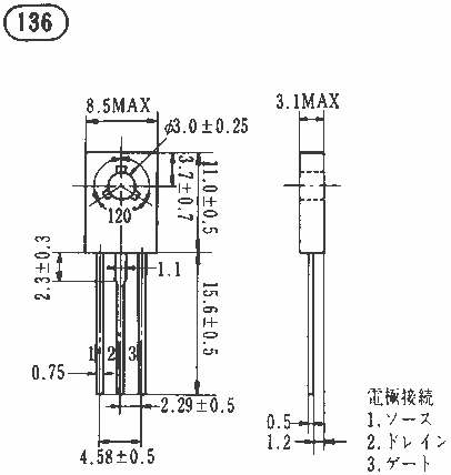 " | LF, LN | " | -20 | GDS | 100 | 125 | 0.06 | 3 | 10 | 0.6 | 2 | 10 | " | 28 | (旧)2SK44 | |||||||