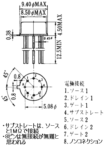 V*** | ID | Pd/Pch | Tj /Tch | IDSS(mA) | gm(mS) | Cis(pF) | Crs(pF) | その他 |