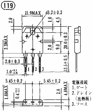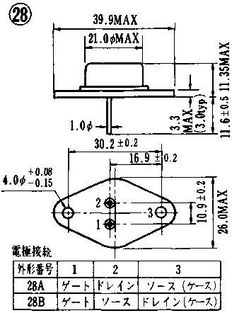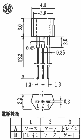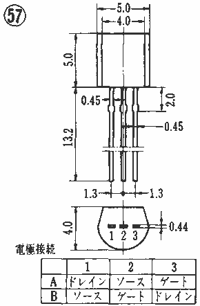 | 2SK223 | " | 高電圧ドライブ | " | -80 | GDS | 400 | 125 | 1.2 | 24 | 30 | 20 | 30 | " | 12 | 2.5 | 57B | 2SK223 | ||||||