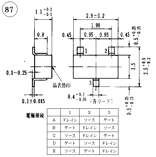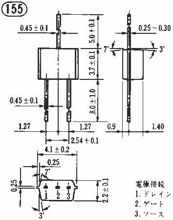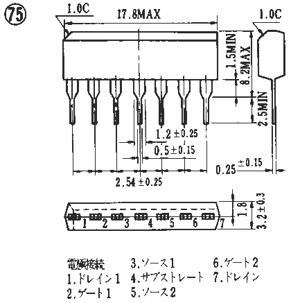 V*** | ID | Pd/Pch | Tj /Tch | IDSS(mA) | gm(mS) | Cis(pF) | Crs(pF) | その他 |