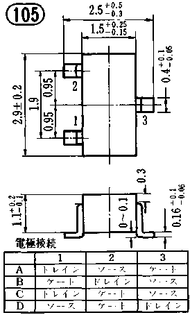 | 2SK208 | 東芝 | C-Mic | J | -50 | GDS | 100 | 125 | 0.3 | 1.4 | 10 | 1.2 | 10 | IDSS | 8.2 | 2.6 | 105A | 2SK208 | ||||||
