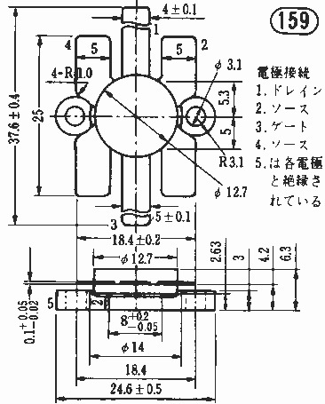 V*** | ID | Pd/Pch | Tj /Tch | IDSS(mA) | gm(mS) | Cis(pF) | Crs(pF) | その他 |